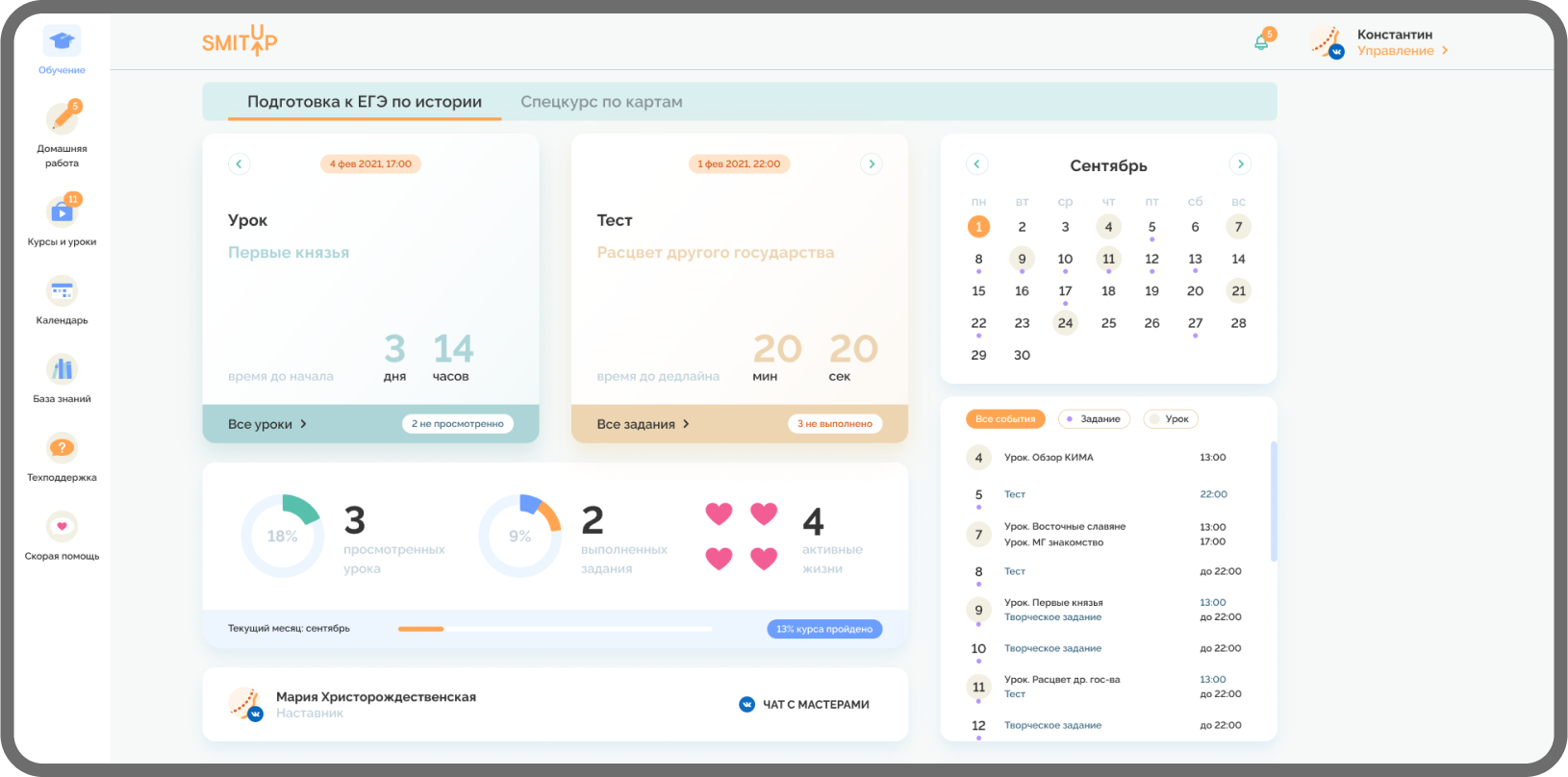 У учеников не было единого пространства, где можно выполнять ДЗ, видеть календарь событий с вебинарами и дедлайнами, отслеживать прогресс обучения.